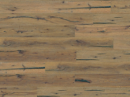 DĄB COLORADO CITY z kolekcji KENTUCKY to deska jedno lamelowa, bardzo rustykalna. Wędzona, szczotkowana, przecierana na biało, z wyraźnymi pęknięciami, olejowana. Fazowanie występuje na wszystkich krawędziach.