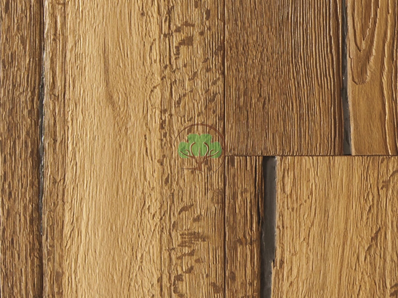 DĄB NEW HEMPSHIRE z kolekcji KENTUCKY to deska jednolamelowa, bardzo rustykalna. Wędzona, szczotkowana, z wyraźnymi pęknięciami, olejowana. Fazowanie występuje na wszystkich krawędziach.