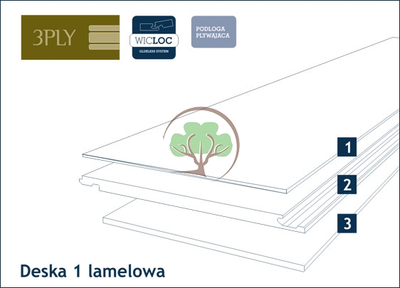 Wykonana z drzewa topoli o grubości 9 mm. Poprzeczne ułożenie listew zapewnia elastyczność i stabilność podłogi.