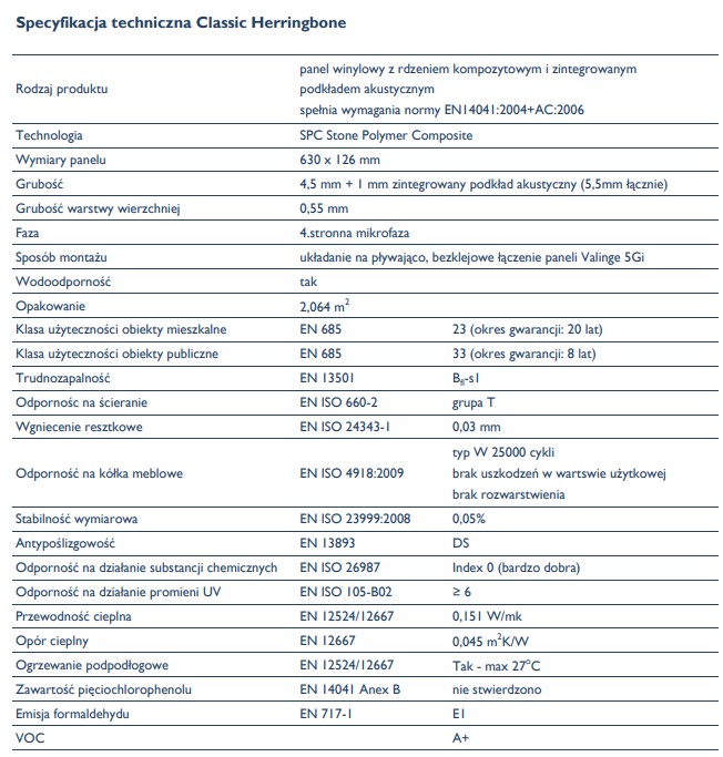 | Rodzaj podłogi | Jodełka Klasyczna |