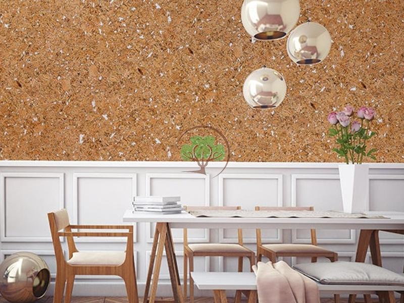 Okładzina w formie płytek klejonych do ściany wykonana jest z dwóch warstw korka - warstwa spodnia zapewnia wyższy komfort cieplny i akustyczny, warstwa wierzchnia w postaci prawdziwego forniru korkowego kreuje niepowtarzalną dekorację W celu zwiększenia trwałości okładziny jej powierzchnia zabezpieczona jest warstwą wosku.